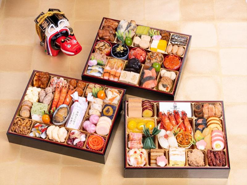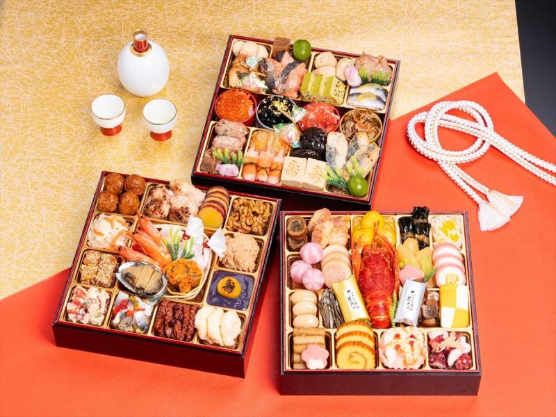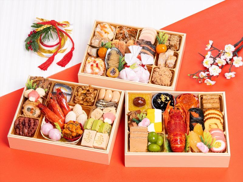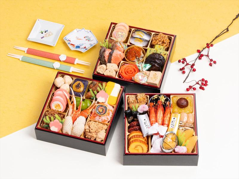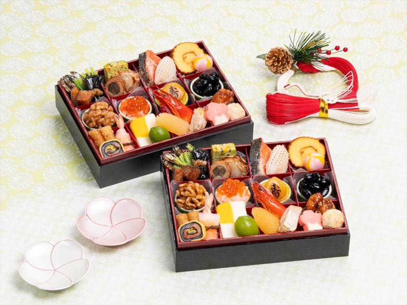 上品な木目柄の重箱にはこだわり抜いた食材それぞれの鮮やかな色彩が映え、初春の食卓をより明るく晴れやかに印象付けます。