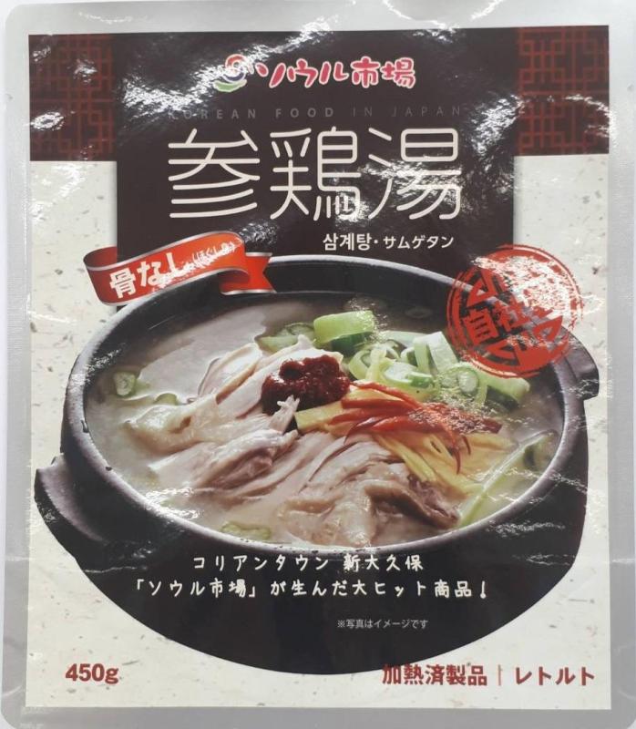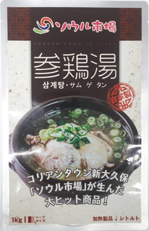 韓国を代表するスタミナ料理。新大久保「ソウル市場」で大ヒットの商品です。自慢の独自スープとやわらかい鶏肉、国産もち米使用、コラーゲンたっぷりで女性に大人気です。※商品名にハーフとございますが、鳥まるごとが、入っているのではなく、半分(半身)が入っているという意味です。