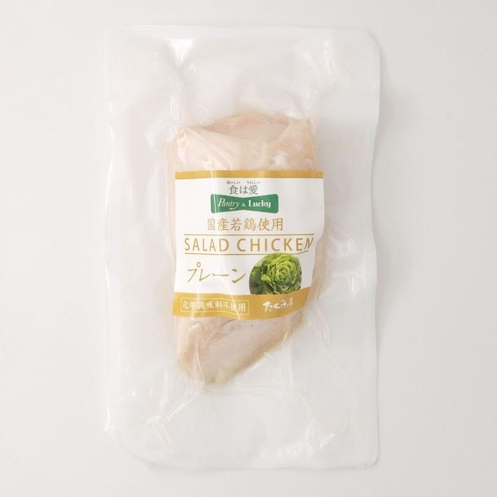 「たくみ亭」のサラダチキンは、しっとりやわらかでジューシーさが人気の一品です。 その理由は原材料と製法にあります。 市販のサラダチキンの中には、食感を良くするためのリン酸塩や増粘多糖類といった食品添加物が使用されているものがあります。 また、味付けに食品添加物であるアミノ酸などの調味料が使われているものもあります。 たくみ亭のサラダチキンは、国産若鶏のムネ肉100%使用。 塩・香辛料を合わせた自家製の調味液に漬け込んで熟成させています。 真空の状態で蒸気加熱することで、旨みを逃さないで仕上げました。 しっとりとした食感で、上質なハムを食べているようなやわらかさです。 あっさりとしていながらもジューシーで、食べ応えのあるサラダチキンです。