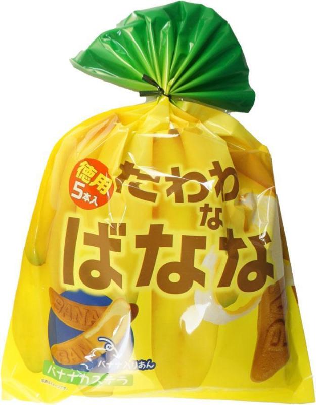 バナナ感満載のバナナカステラです。袋のデザインがバナナを意識したもので、大陳すれば、まるでバナナ売り場の様。バナナピューレ入で1本1本が個包装されていて、幅広い年代層の方々に愛されている商品です。冷凍庫に入れても凍らず、サックリとナイフが入って冷たい食べ方ができます。