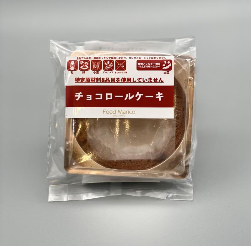 特定原材料8品目とカカオを除く全てのナッツ類を使用しないチョコレートロールケーキです。食物アレルギーの方、白砂糖を使用せず、ビーガンてんさい糖を使用しているのでビーガンの方、グルテンフリー食が必要な方など多くのフードバリアフリーに対応しています。また本品は、特定原材料8品目とすべてのナッツ類を持ち込まない専用施設でコンタミネーションリスクがない状態のもとで製造しています。
