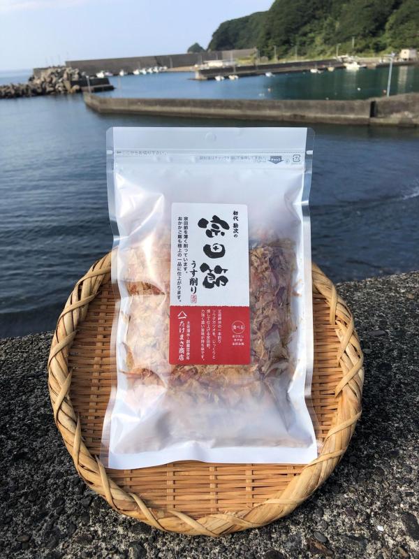 宗田節うす削り 高知県土佐沖で水揚げされたマルソウダガツオを仕入れ、創業より受け継いだ伝統製法にこだわって造り上げた宗田節。職人による厳選された宗田節のみを使用し、薄く削った節は薫りと味がつよくしっかりとした旨味が特徴です。 商品の分類:加工水産/削り節・かつお節 内容量:40g 保存温度帯:常温 賞味期限:製造日から365日 業務用・小売用:小売用 希望する販路先: 小売:上質スーパー 希望小売価格:500円(税抜)