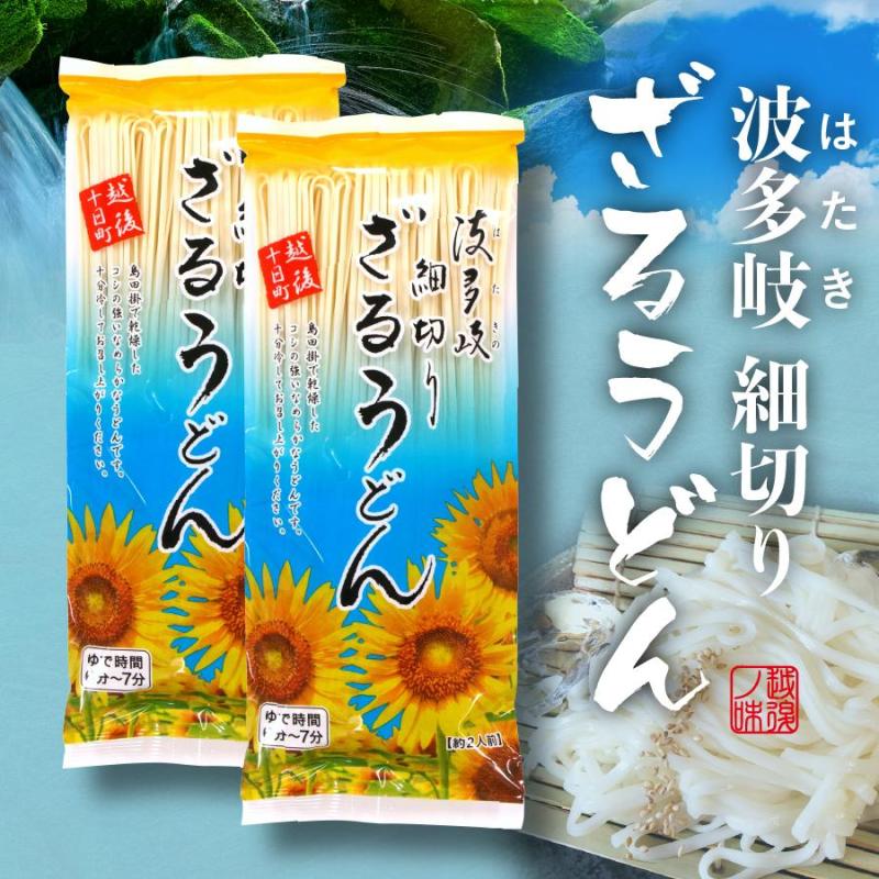 波多岐ざるうどん 島田掛けで乾燥したコシと喉ごし抜群なうどんです 商品の分類:麺類/乾麺 内容量:200g 保存温度帯:常温 賞味期限:製造日から365日 業務用・小売用:小売用 希望する販路先: 小売:百貨店 小売:上質スーパー 食品通販:食品を扱う通販 希望小売価格:250円(税抜)