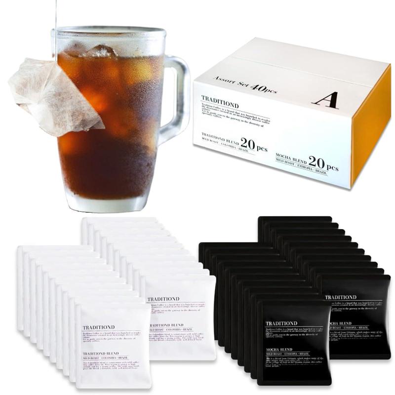 自宅飲み用にパッケージデザインに拘り開発。アラビカ種100%使用、香り高くすっきりとした味わい。ティーバッグ式でお湯を注ぐだけで抽出できる手軽さで、本格コーヒーを楽しめます。ブレンドの比率と焙煎度の調整に試行錯誤を重ね、雑味のないバランスを追求しました。 ※その他【Bセット】 【80個入セット C】 【80個入セットD】があります。